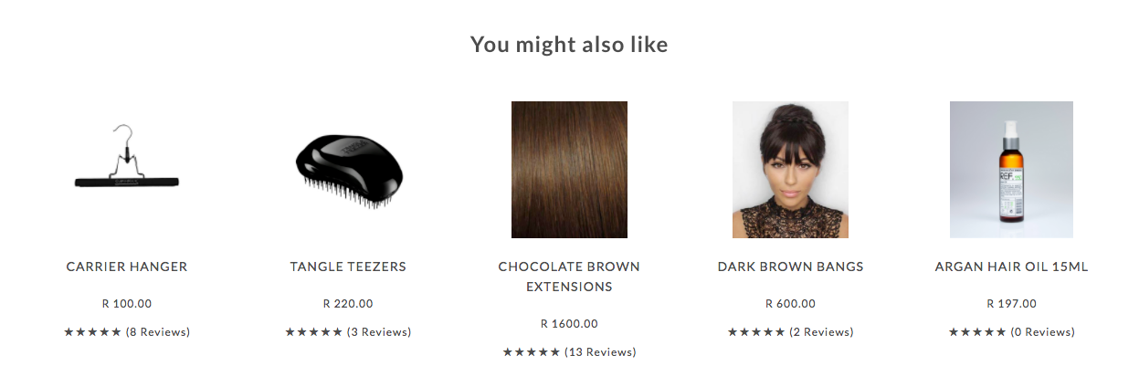 If you are already using our Product Recommendation widgets, you now have the option to also display the product’s rating in those widgets. This means that the widget will display some personalised recommendations to your customers / visitors and add a touch of social proof by showcasing the rating for that product. Just look at how enticing this looks… 🙂